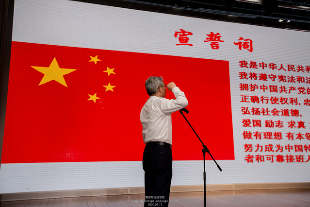 ▲ 全国人大代表、教学处副主任李鸿彬老师带领同学们宣誓